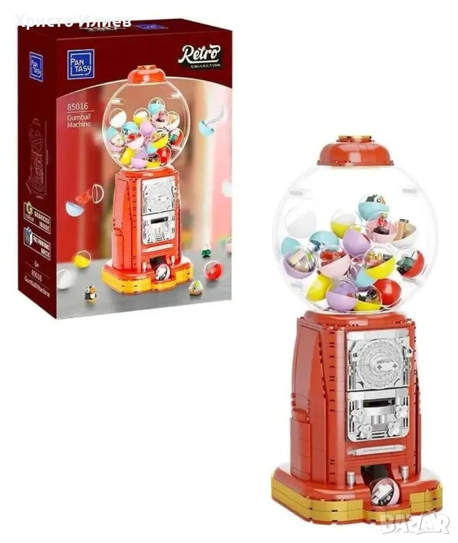 Pantasy 85016 е грижливо проектиран комплект строителни блокчета в стила на класическа машина за дъвки/бонбони. Сглобяването му разкрива много ретро детайли, което прави модела декоративен елемент за рафт, бюро или витрина - идеален за феновете на носталгични дизайни и оригинални модели за показване.
