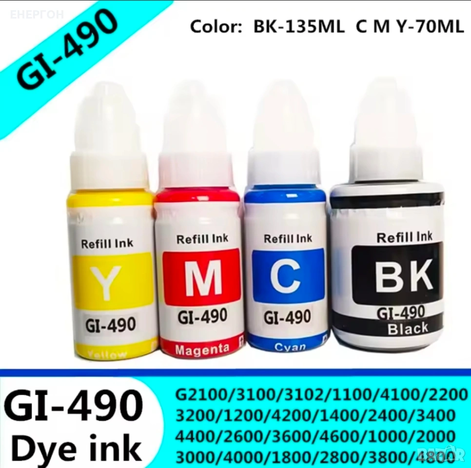(Мастилата са напълно съвместими със следните модели от G-серията на Canon, както и с аналозите на GI-190, GI-290, GI-490, GI-790, GI-890, GI-990 за различните пазари):