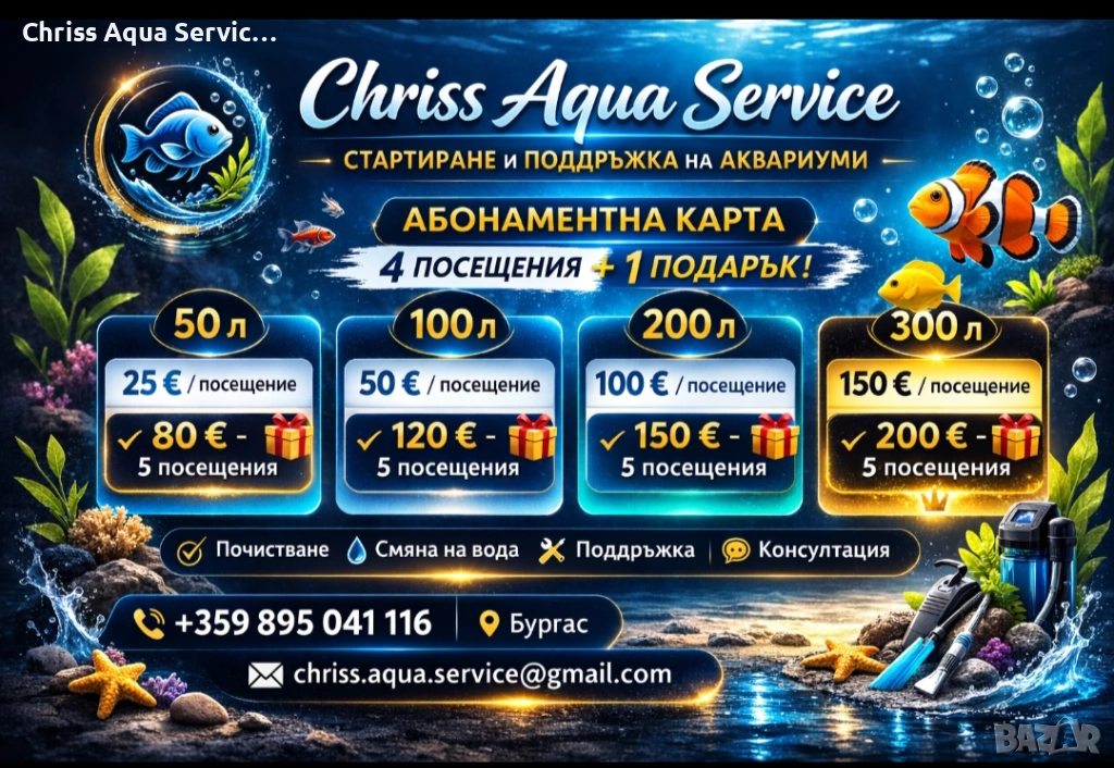 🐟 Услуга: „Готов аквариум монтаж и поддръжка“