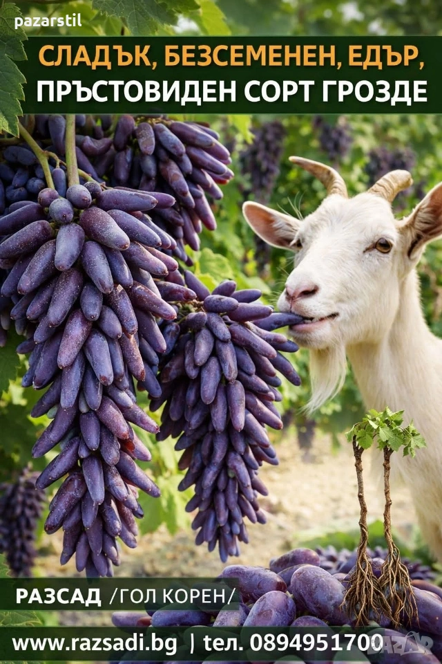 Десертен, хибриден, червен, безсеменен сорт пръстовидно грозде.