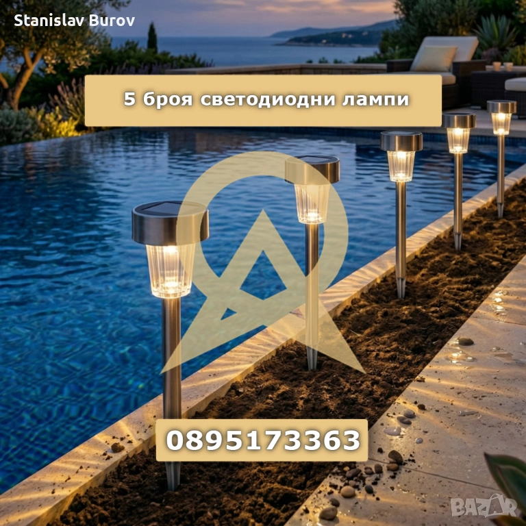 Комплект от 5 броя светодиодни соларни лампи - автоматично включване без разход за електроенергия