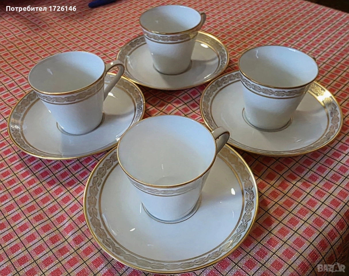 Порцеланов сет за кафе 4 броя с позлата на Eschenbach Bavaria Germany → Обява 54037282