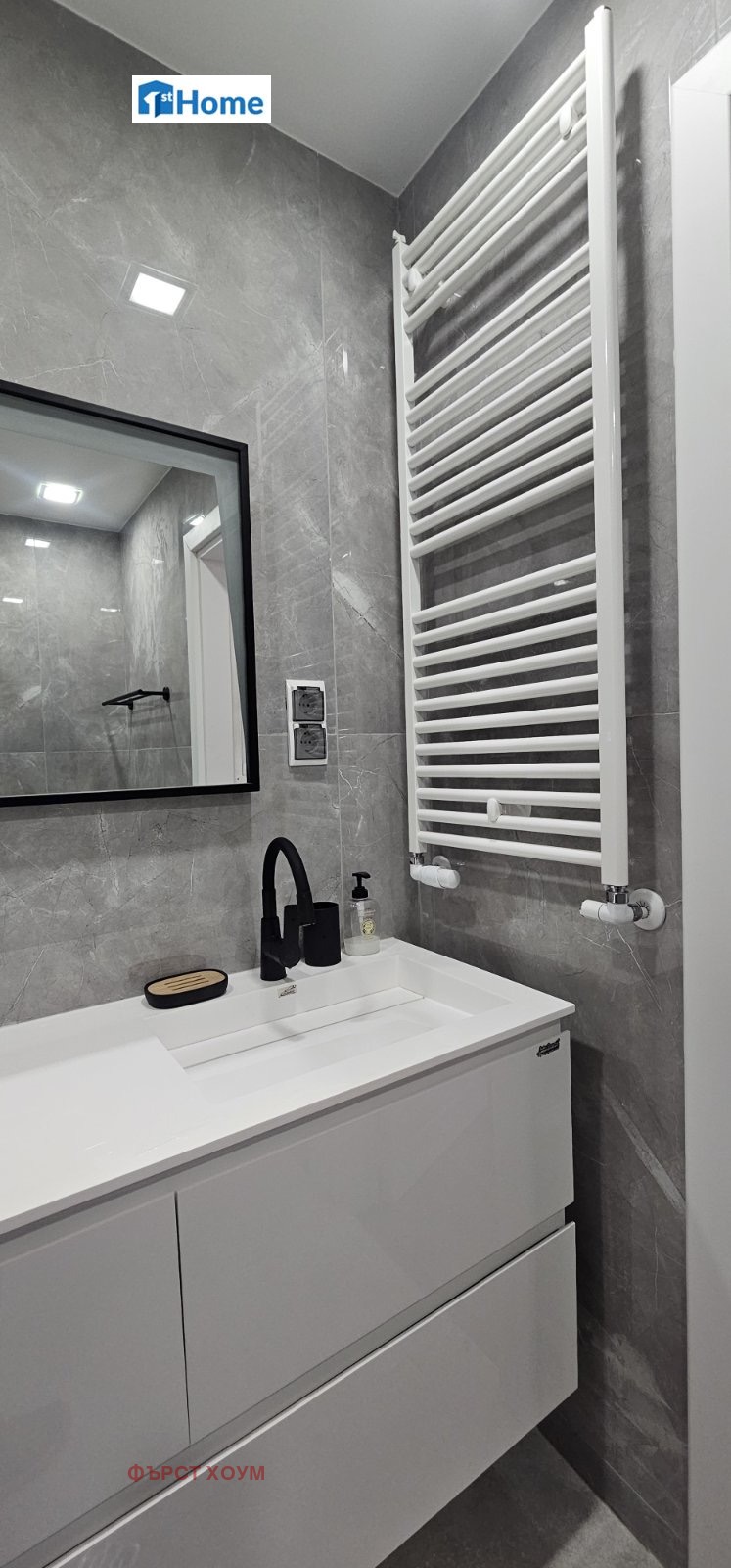 Апартаментът се предлага полуобзаведен, с напълно оборудвана кухня и завършени санитарни помещения в изчистен, съвременен стил. Отоплението е решено с газово котле и радиатори, допълнено от климатици. Мокрото помещение дава възможност за обособяване на перално или гардеробна.