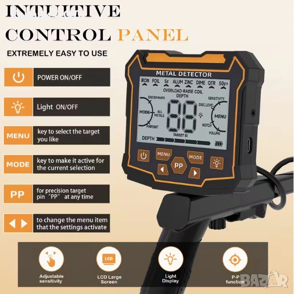4. Когато търсите в силно минерализирана област, уредът ще звучи дори и даняма метал. В този случай можете да намалите чувствителността и да зададетедискриминация на висока позиция като както и увеличаване на височината между търсещата бобина и земята до фалшивия сигнал изчезва. Що се отнася до позицията на DISC.you трябва да поставите метална проба високо минерализирана пръст или мокър пясък за тестване, преди да го поставите.