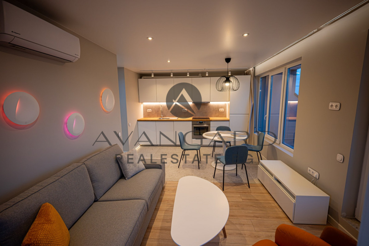 АКТ 16! ЛУКСОЗНО ОБЗАВЕДЕН ДВУСТАЕН АПАРТАМЕНТ! ВЪЗМОЖНОСТ ЗА ЗАКУПУВАНЕ НА ПАРКОМЯСТО! Предлагаме Ви да закупите ЧУДЕСЕН ДВУСТАЕН АПАРТАМЕНТ, разположен в малка луксозна сграда! Имотът се състои от голям хол с кухненски бокс, просторна спалня, баня с тоалетна, входно антре и тераса. Жилището луксозно отремонтирано и завършено, със система за умен дом. Продава се напълно обзаведено, което Ви позволява да се нанесете веднага. Намира се в близост до всичко необходимо за живеене, което го прави чудесен избор за Вашият нов дом и отлична инвестиция с цел отдаване под наем.