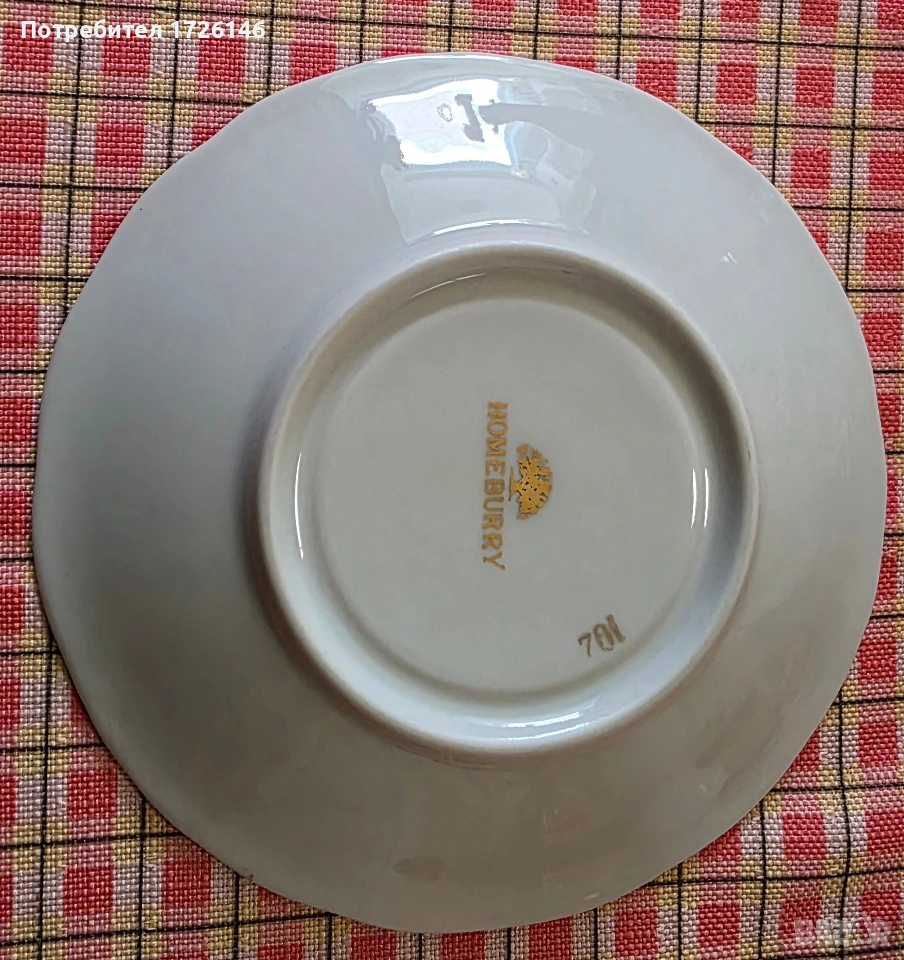Порцеланов сет за кафе с позлата 4 броя Homeburry. На чашката има само номер. На чинийката има печат.