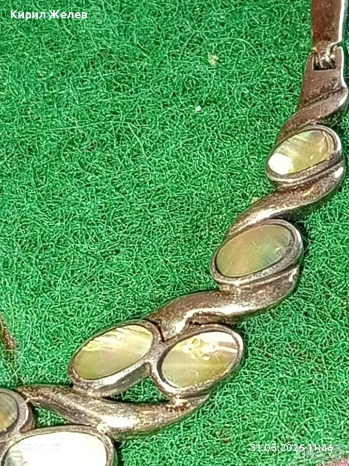 Сребърно колие с КРАЛСКИ СЕДЕФ винтидж стил майсторска ръчна изработка 52164