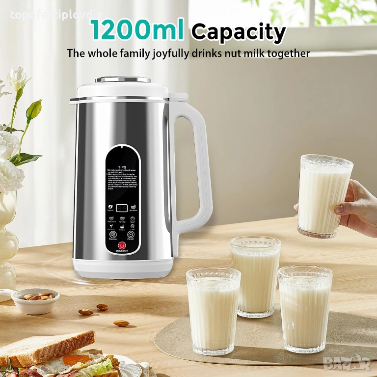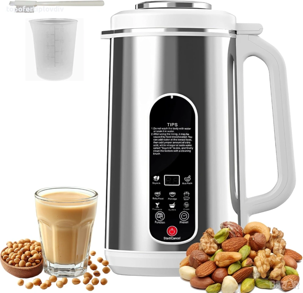 МНОГОФУНКЦИОНАЛНА И 8-В-1 ФУНКЦИИ - Многофункционалното растително мляко Milk печели точки с 8 интелигентни програми: смесване на кремообразно соево мляко, готвене на гореща оризова каша, приготвяне на пресни сокове, готвене на бебешка храна, готвене на пълнозърнести ястия, варене на вода, приготвяне на ядково мляко и почистване - идеално за лесно приготвяне на зеленчукови напитки и здравословни ястия.