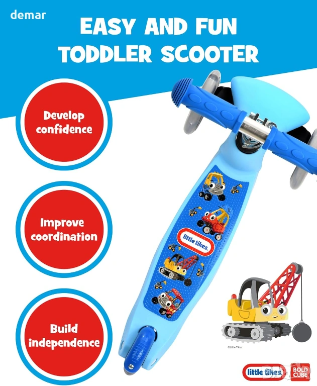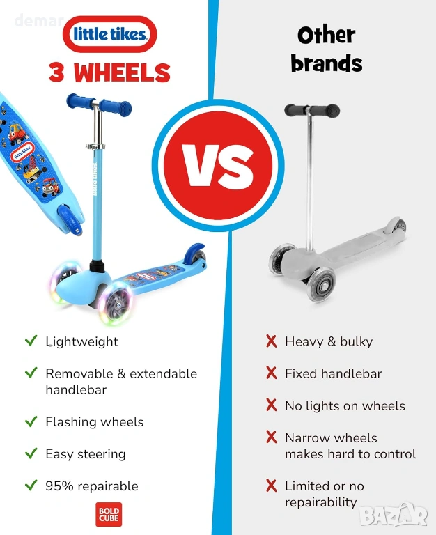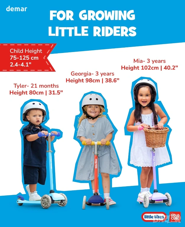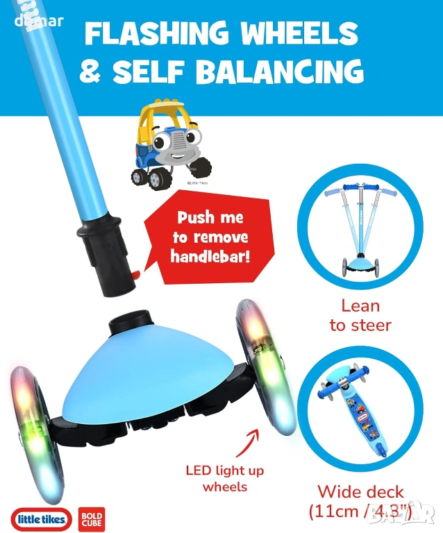 BOLDCUBE Тротинетка с 3 колела за деца 2-6 години с LED мигащи колела