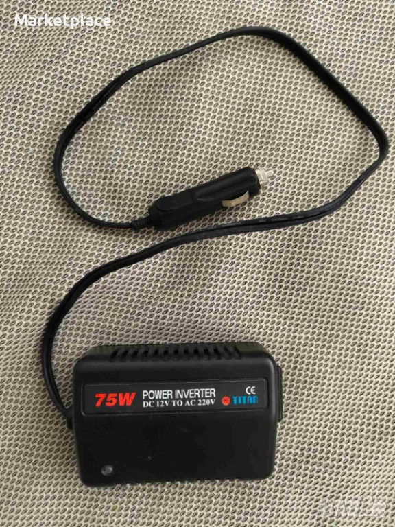 Продавам инвертор Titan 12V с номинална мощност 75W и пикова 150W. Устройството е в отлично състояние, работи безупречно и е идеално за лаптопи, зарядни, малки уреди и пътувания.