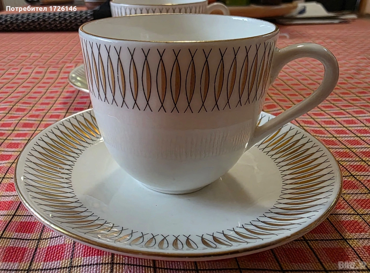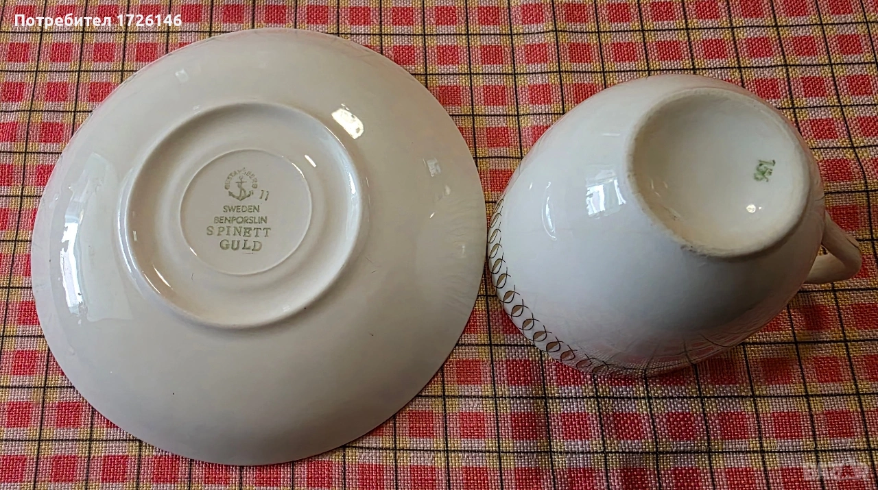 Сет за кафе от фин костен порцелан Spinett Guld на Gustavberg, Sweden - 2 броя → Обява 54037868
