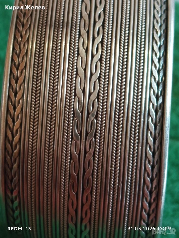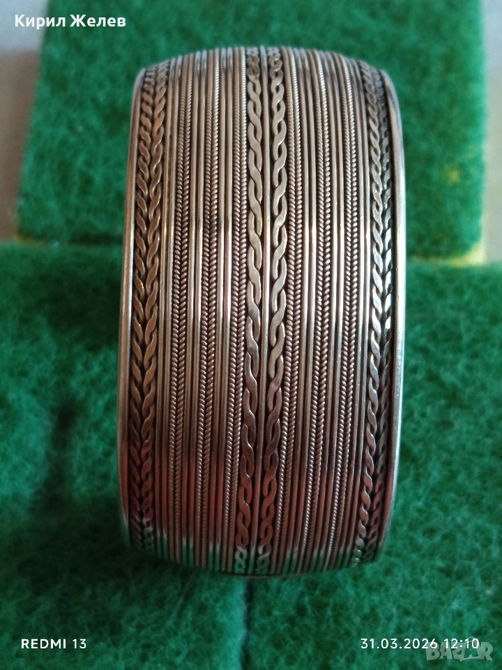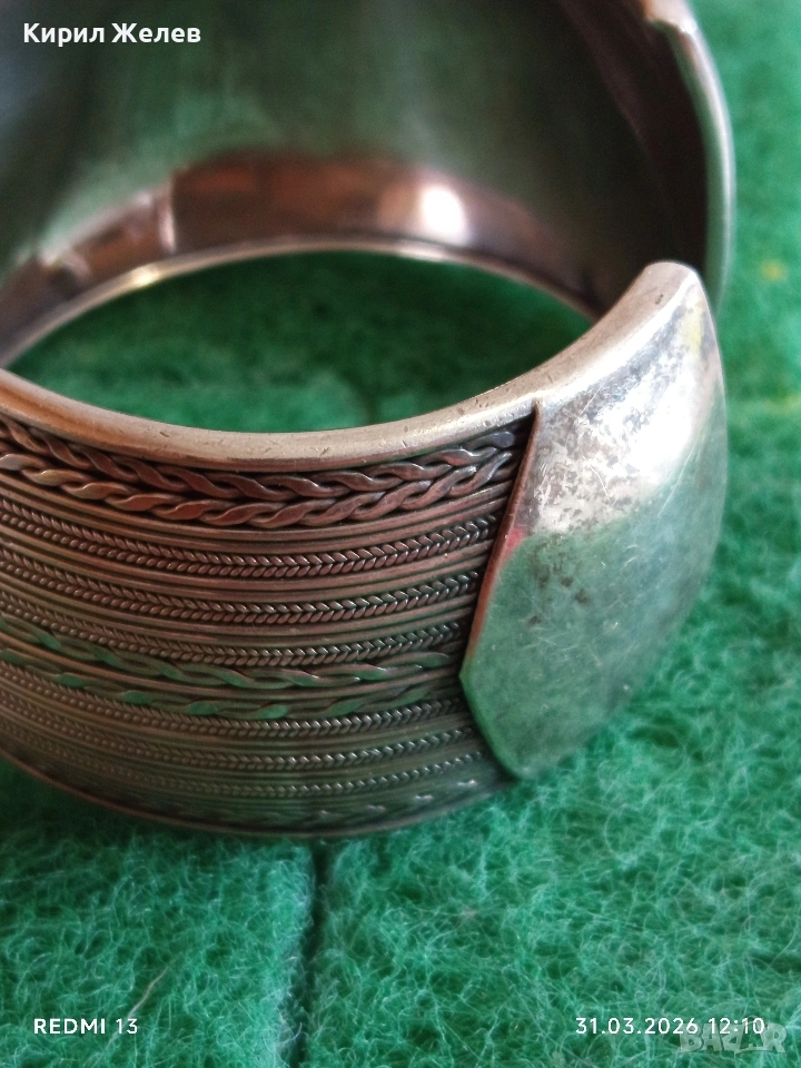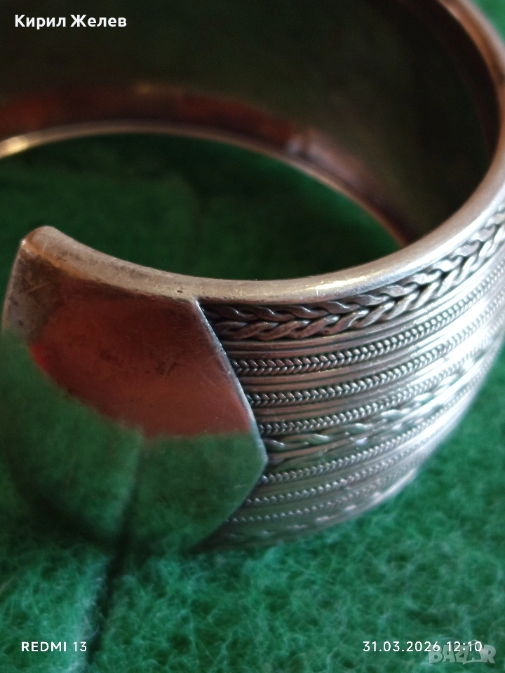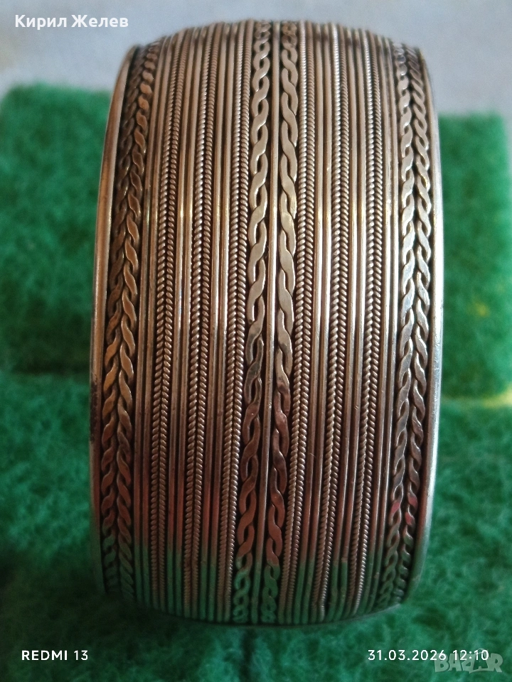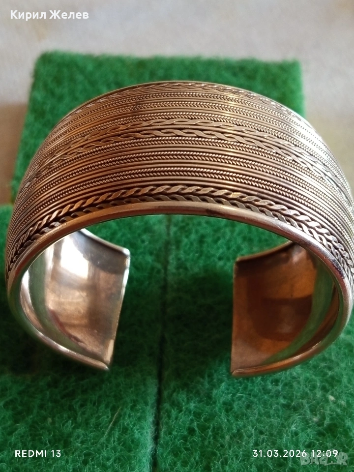Стилна отворена сребърна гривна орнаментика много красива 51355