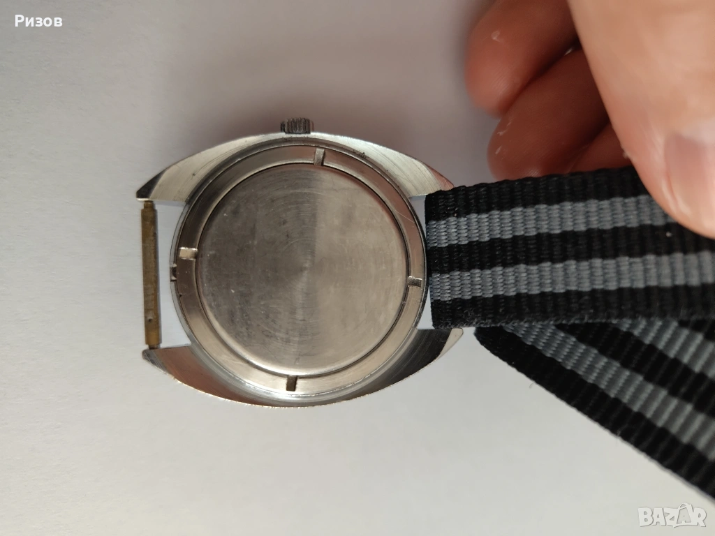Профилактиран и добре работещ. Чисто нови циферблат и стрелки. Касата и стъклото са с монимални следи от употреба. НАТО каишка.