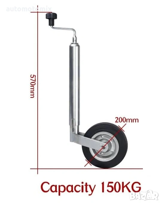 Висококачествено опорно колело е предназначено за стабилно подпиране и лесно маневриране на ремаркета, каравани, платформи и други прикачни съоръжения.