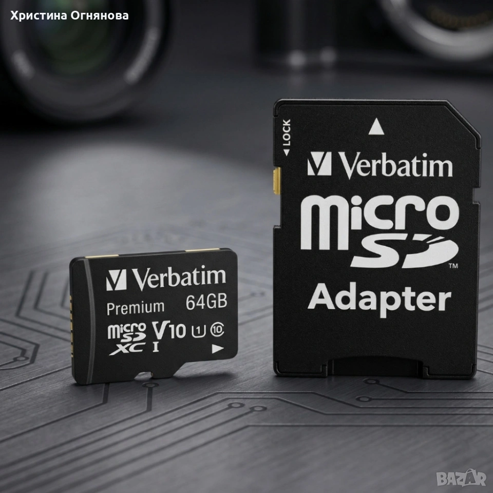 Технически характеристики на Micro CD карта памет 64GB - повече място за съхранение Тези детайли правят продукта точен и доверим инструмент за вашите устройства: Тип: microSDXC (изисква SDXC хост устройство за пълна съвместимост) Капацитет: 64 GB Клас: Class 10, V10, UHS-I (U1) Скорост на четене: до 90 MB/s Поддръжка: подходяща за Full HD (1080p) запис и използване с Nintendo Switch™ Издръжливост: водоустойчива, удароустойчива, температурно устойчива Размери microSD: 15 x 11 x 1.0 мм, тегло ~0.5 г; SD адаптер: 32 x 24 x 2.1 мм, тегло ~2 г