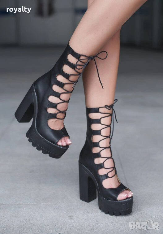 Летни боти на ток - черна кожа → Обява 54038352