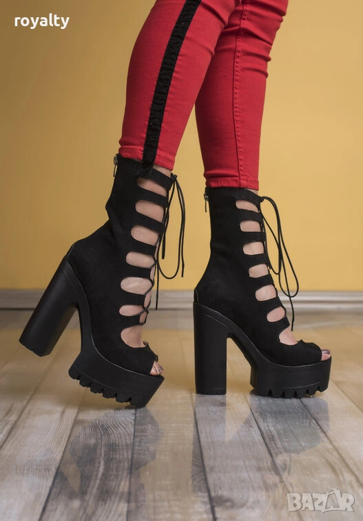 Летни боти на ток - черен велур → Обява 54038363