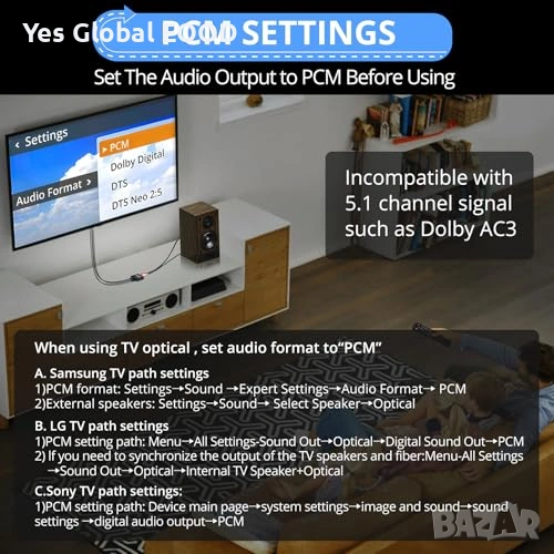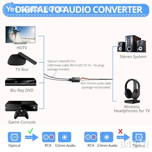 DAC конвертор CAMWAY SPDIF/Toslink към RCA аудио