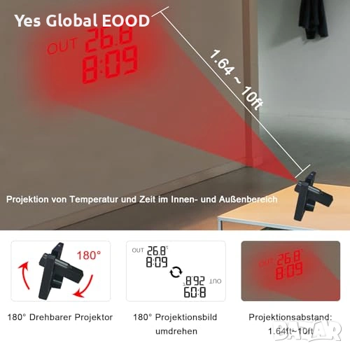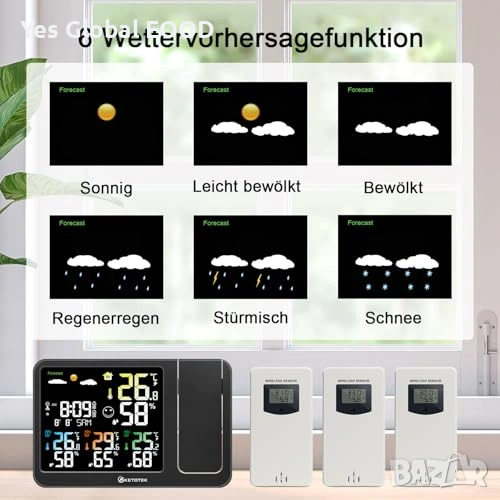 KETOTEK метео станция с проектор, DCF, 3 сензора