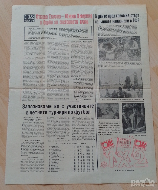 вестник спорт тото за СП по футбол 1974г → Обява 54038567