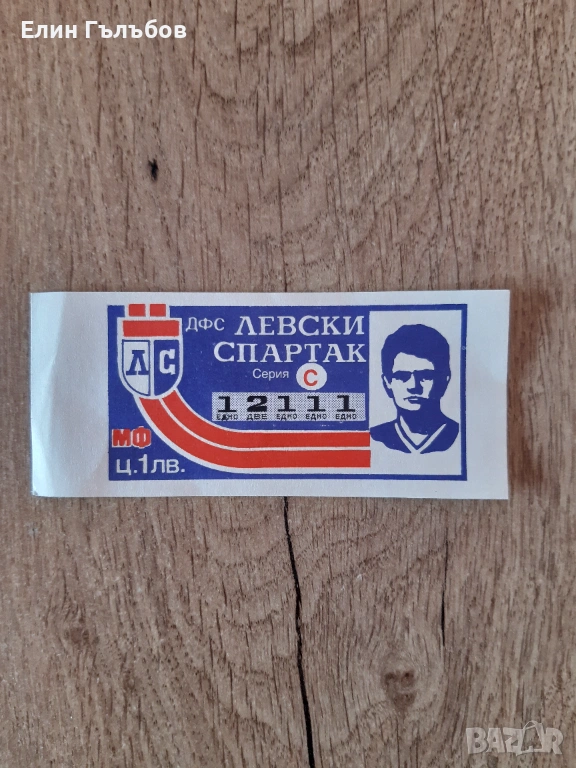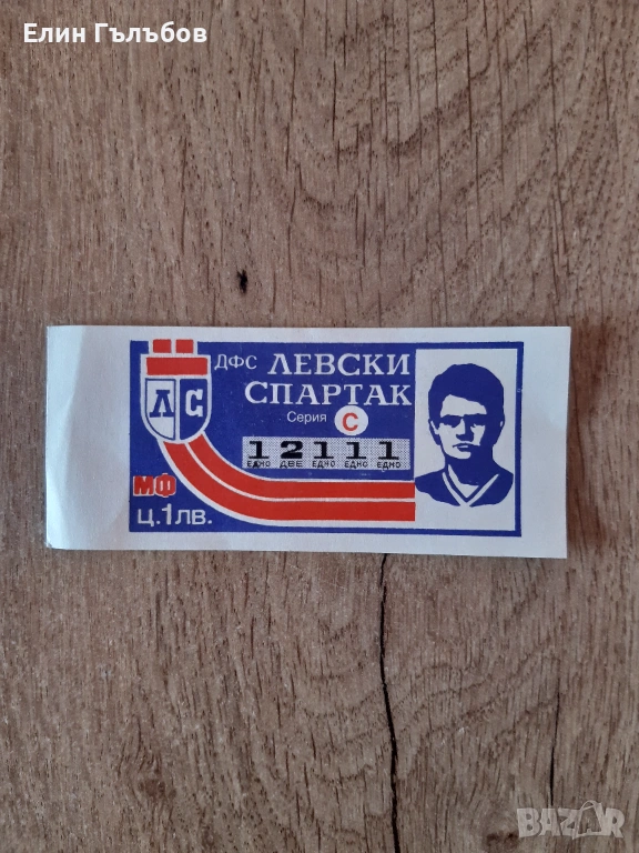 Продавам лотариен билет на ДФС Левски - Спартак с лика на Георги Аспарухов Гунди .