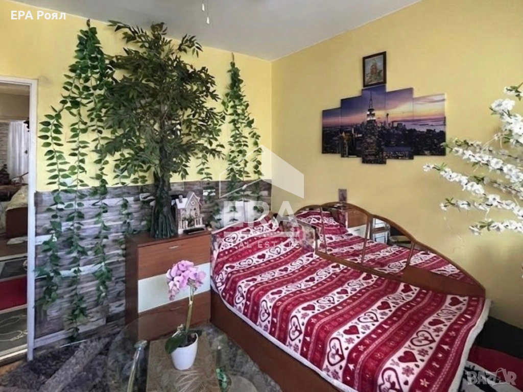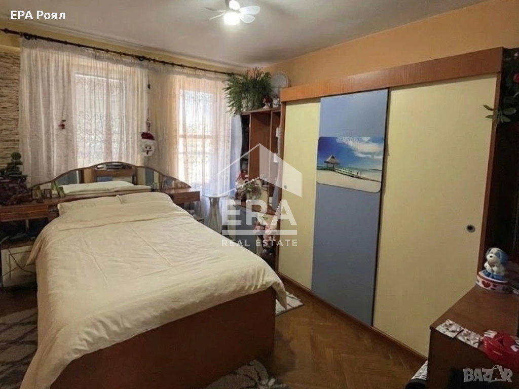 Спални: Помещенията са светли, с подови настилки от естествен паркет и големи гардероби.