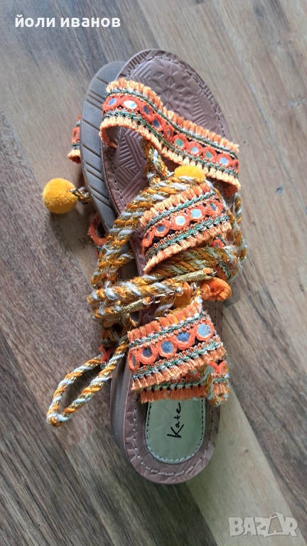 Нови сандали дамски с каучукова подметка,шарени с връзки и презрамки,41 номер,равна подметка