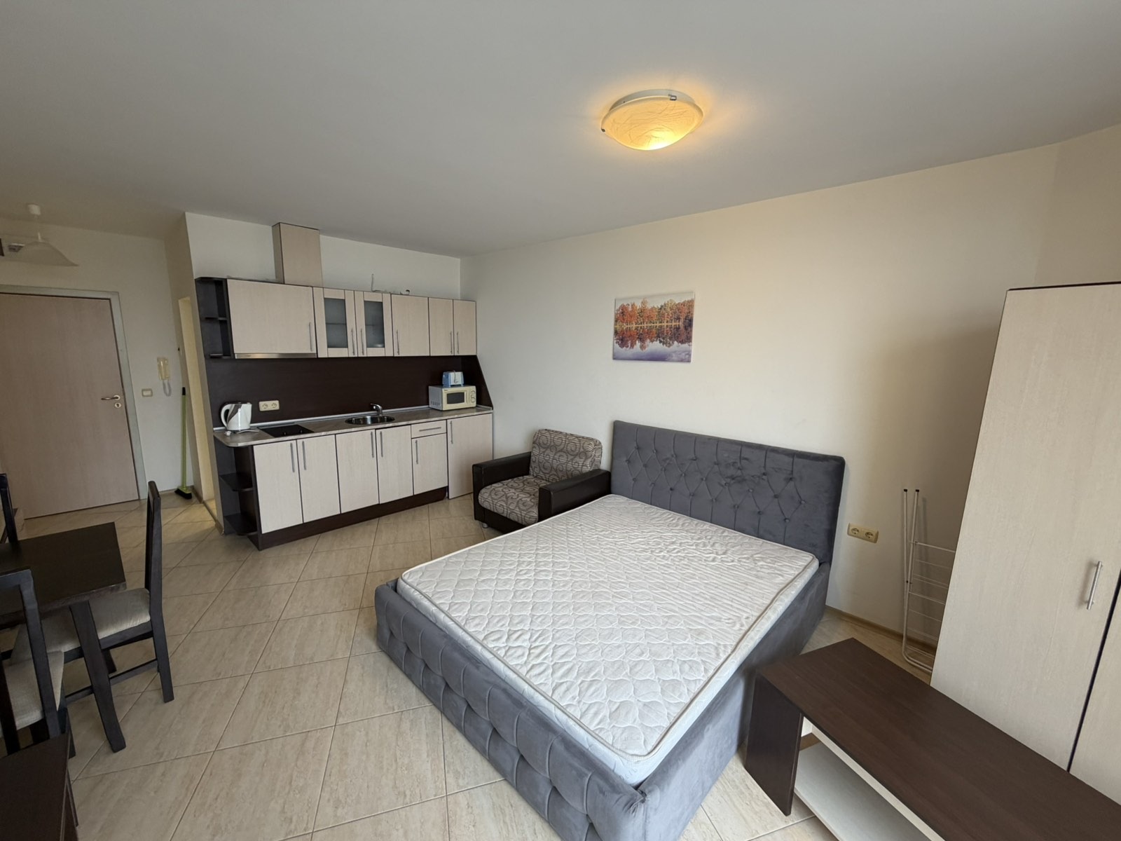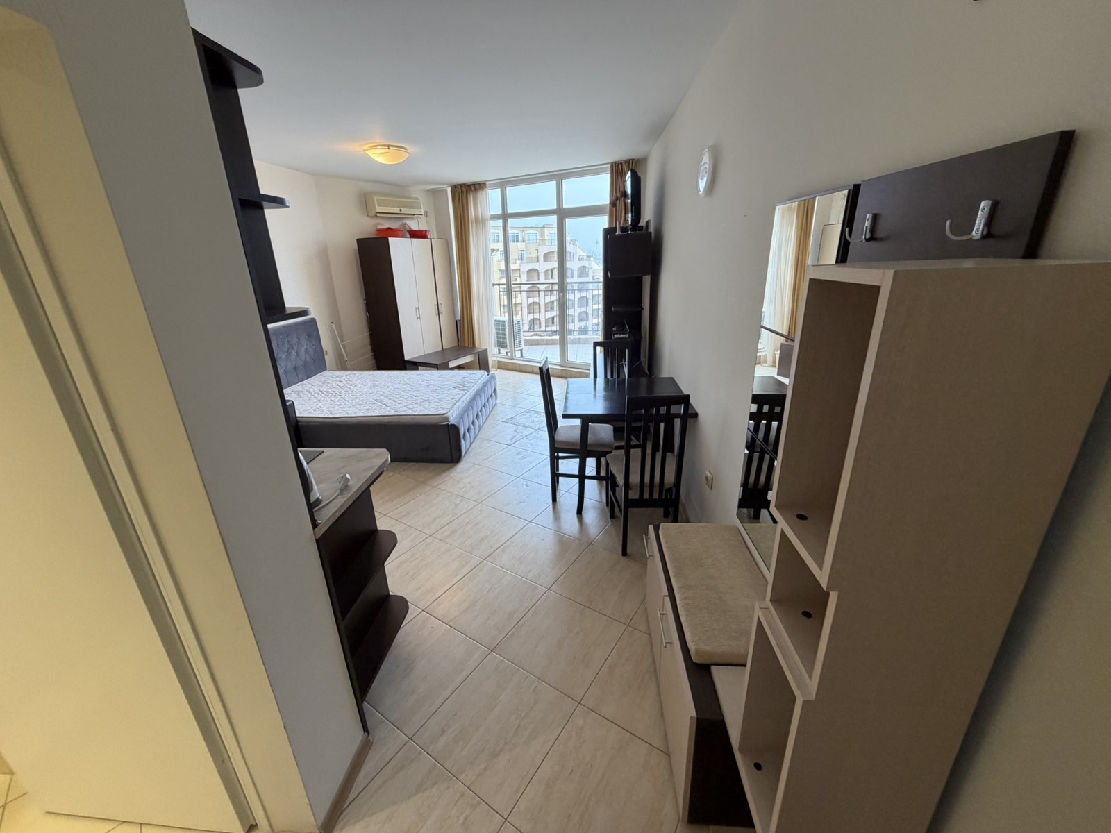 Продава се просторно и светло студио в Ахелой с панорамна морска гледка, разположено на трети етаж в затворен, целогодишен, добре поддържан и охраняем комплекс на първа линия море. Апартаментът се намира на едно от най-привлекателните места по крайбрежието, съчетаващо спокойствие, чист морски въздух и живописни гледки с удобството на развита инфраструктура в комплекса, включваща басейни, магазини, кафенета, ресторанти и зони за отдих и разходки. Жилището е с функционално разпределение и уютна атмосфера, напълно обзаведено с мебели и модерна домакинска техника, което позволява незабавно нанасяне или отдаване под наем без допълнителни инвестиции. От апартамента се разкрива впечатляваща панорамна гледка към морето, създаваща усещане за простор и комфорт. Комплексът предлага високо ниво на удобство, сигурност и отлично поддържана територия, подходяща както за летен отдих, така и за целогодишно живеене. Отлично предложение за хора, които търсят имот на първа линия море с висок инвестиционен потенциал и готовност за ползване.