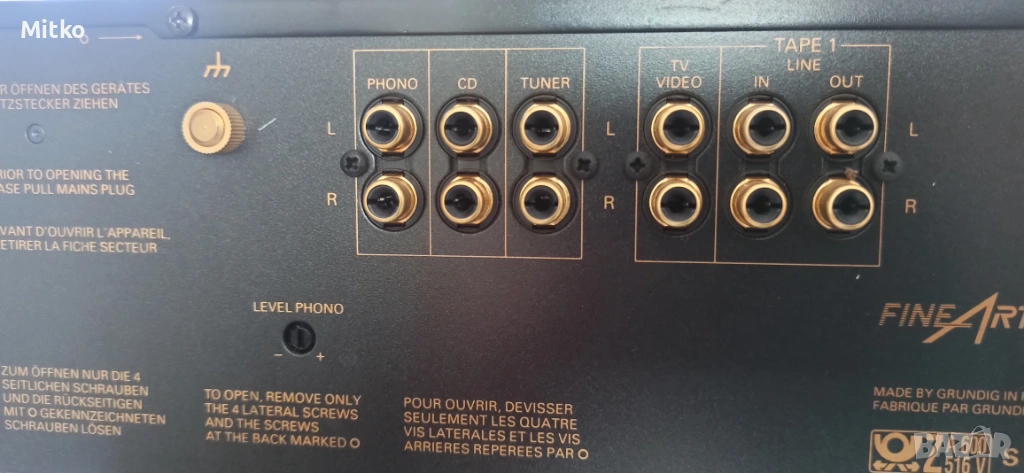 1x фоно (с контрол на нивото отзад) 1.9 mV / 47 kOhm 1x CD 180 mV / 230 kOhm 1x тунер 180 mV / 230 kOhm 1x TV/Видео 180 mV / 230 kOhm 1x Монитор 180 mV / 230 kOhm