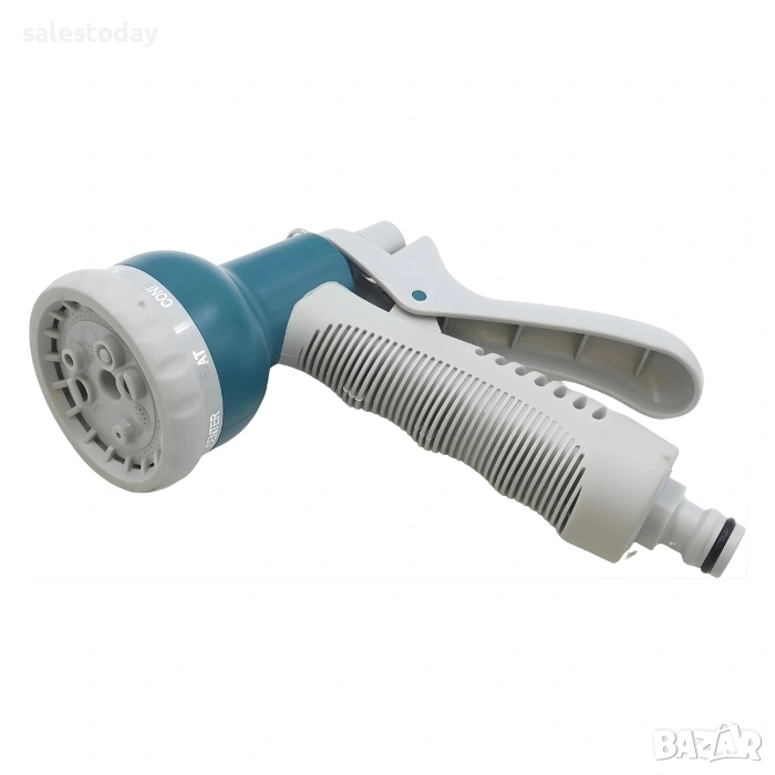 В комплекта е включен мултифункционален пистолет с 8 различни режима на пръскане, позволяващ избор на подходяща струя според нуждите – от нежно поливане до силна струя за почистване.