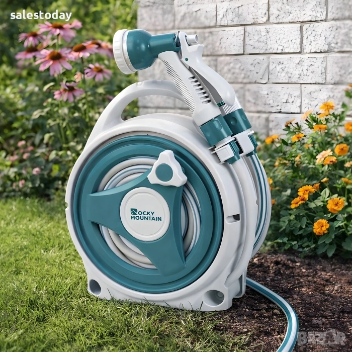 Практичен и удобен комплект градински маркуч с макара, създаден за лесно и ефективно поливане и почистване. Благодарение на компактния дизайн и автоматичната система за навиване, маркучът се използва и съхранява без усилие, без заплитане и усукване.