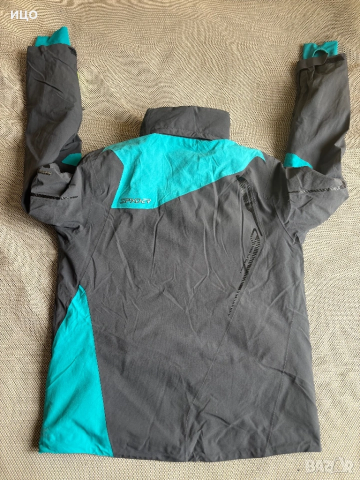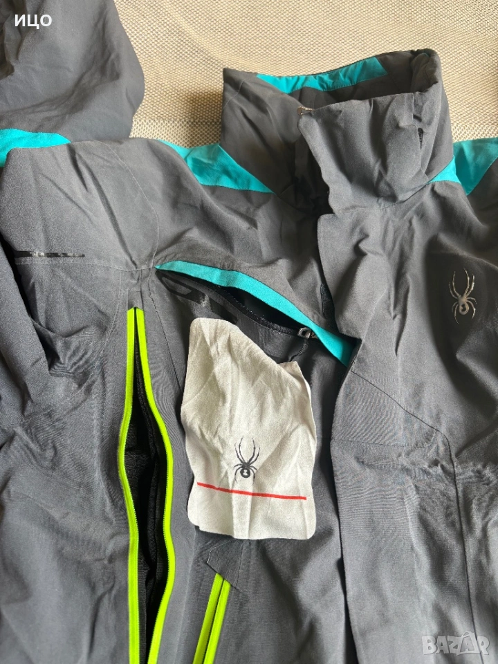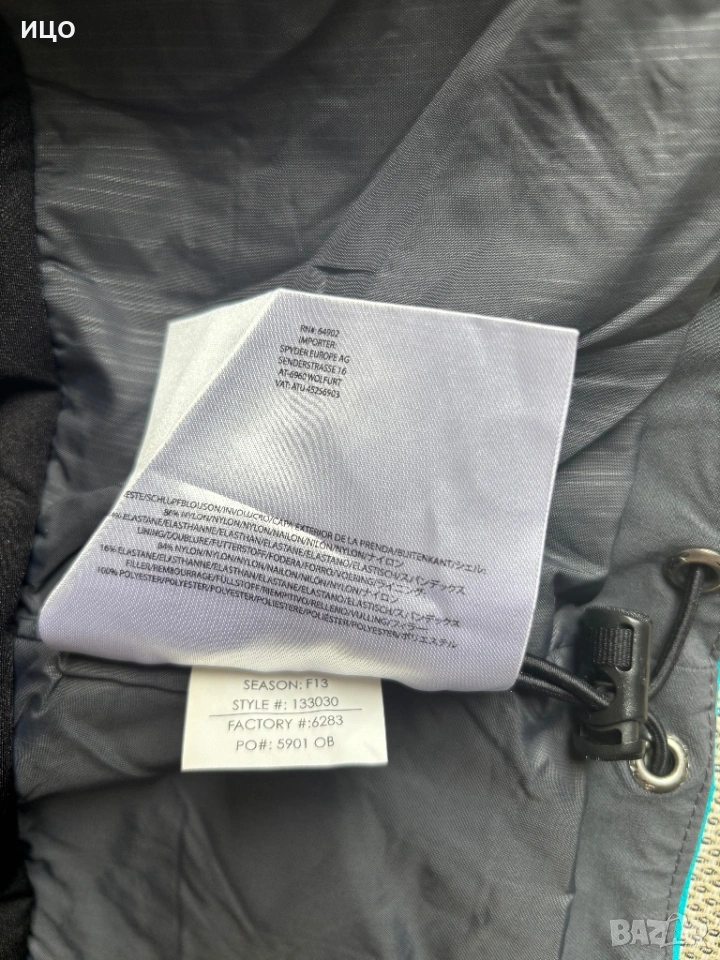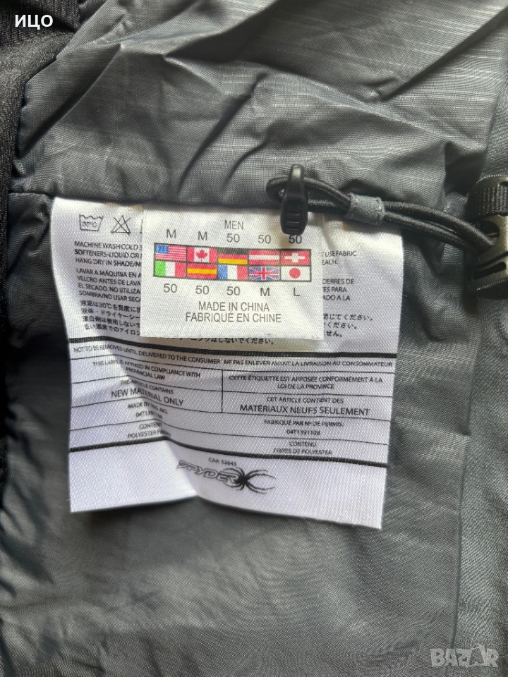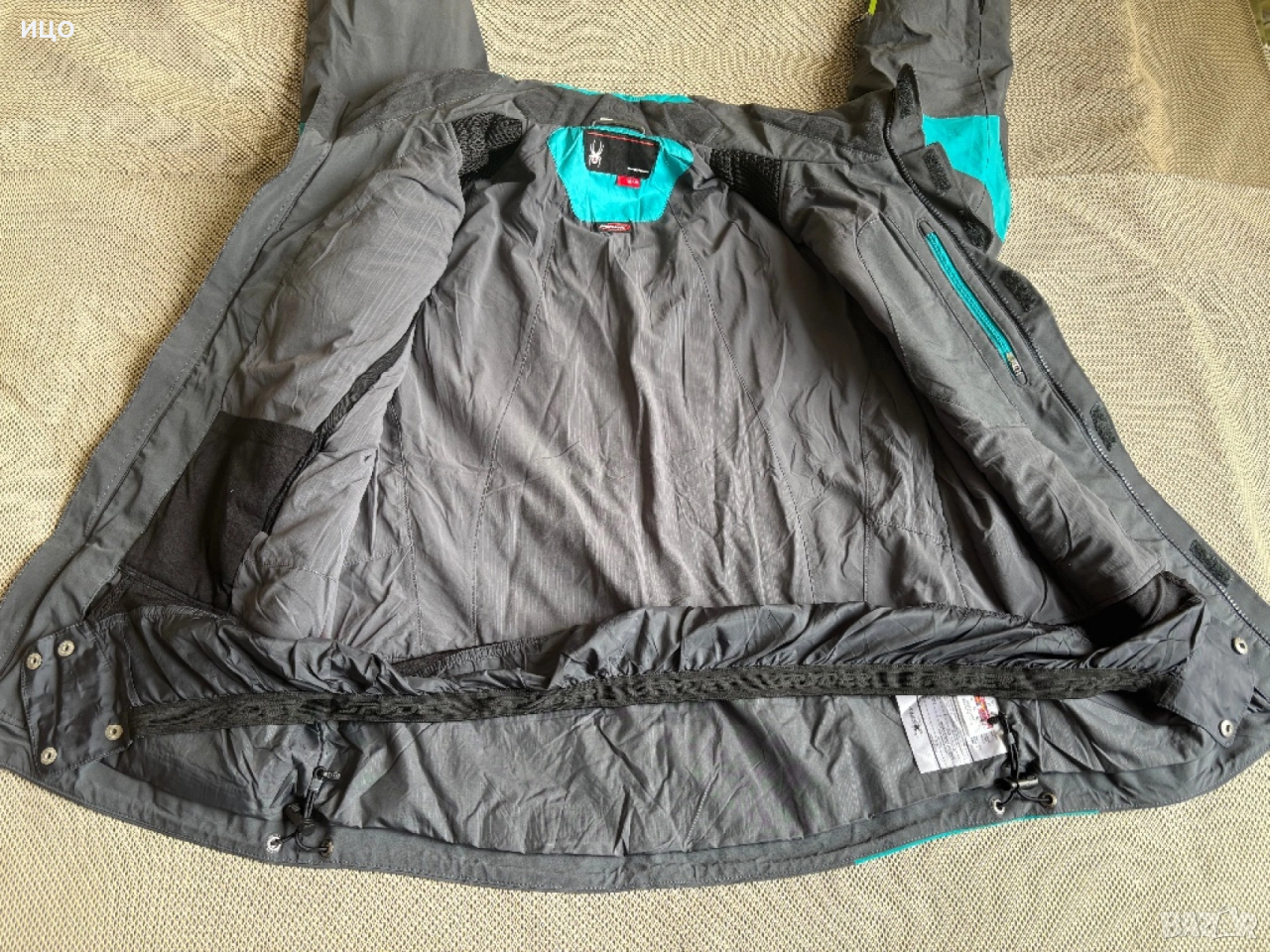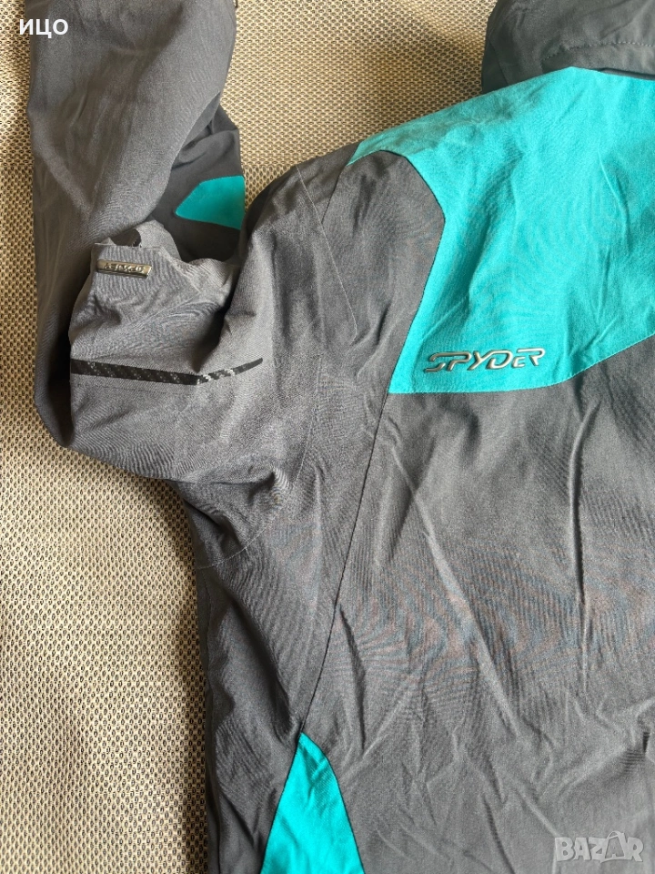 Без качулка. На последна снимка показано много минимално захабено на яка, рамо и минимално изцапано на ластик на ръка.