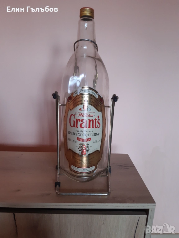Галон (бутилка) от укски Grant"s, на люлка, 4.5 литра → Обява 54039542