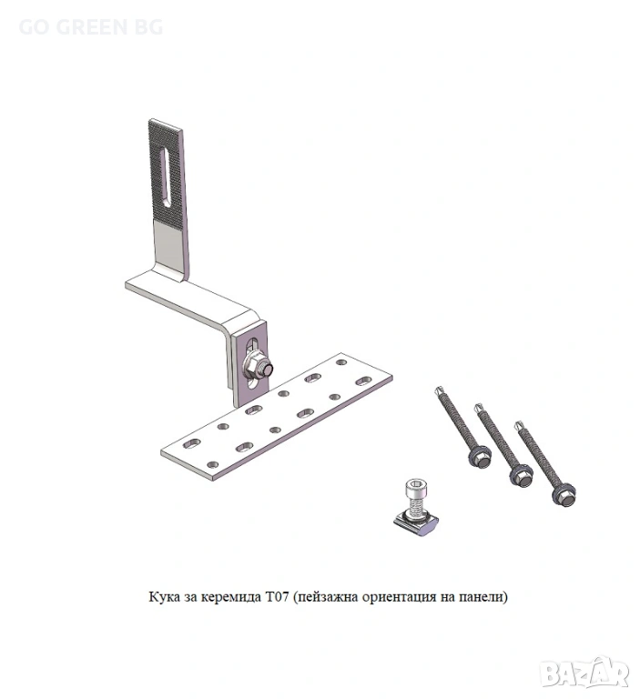 Кука за керемида T07 (пейзажна ориентация на панели)