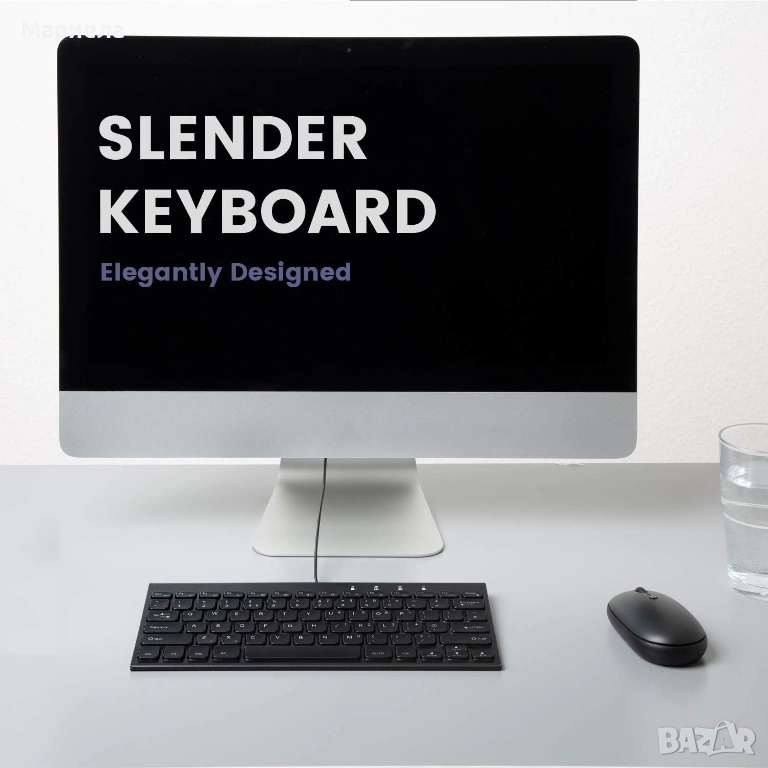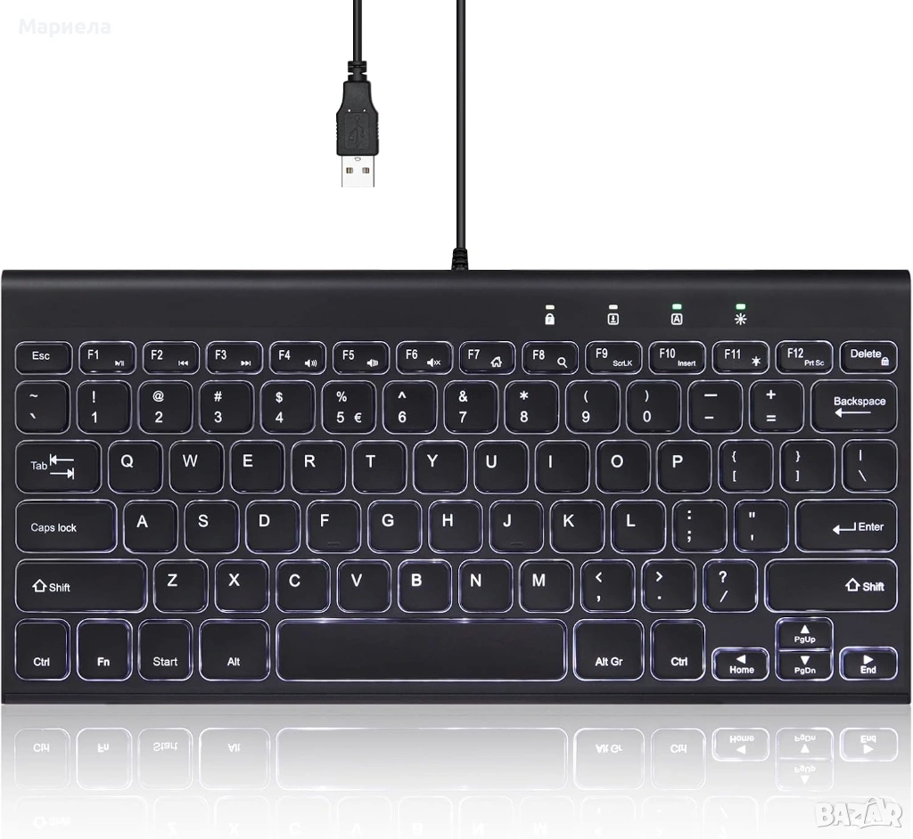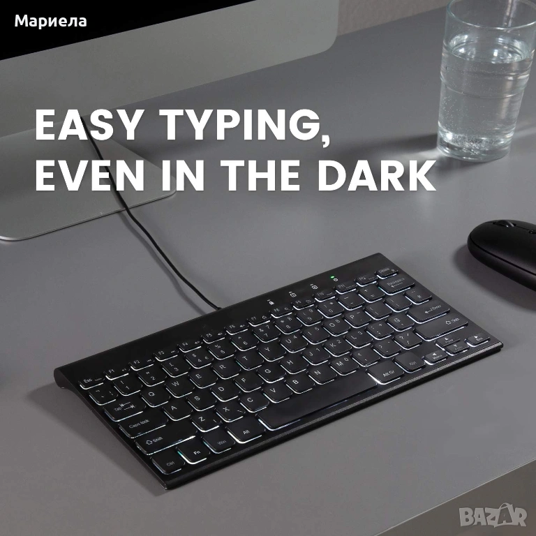 Мини клавиатурата е без цифров блок, която спестява място на бюрото и е удобна за употреба.