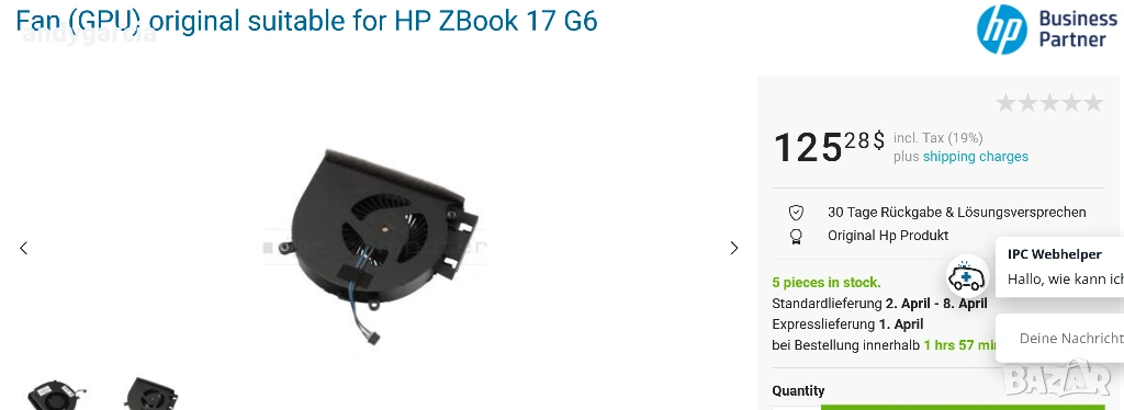 Fan GPU / CPU - HP ZBook 17 G6 HP ZBook 17 G5 оригинален вентилатор за процесор или видео карта