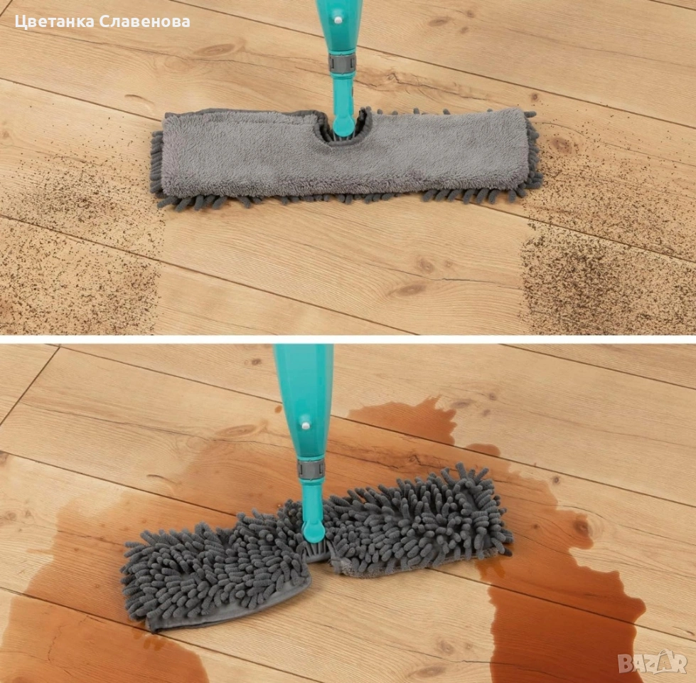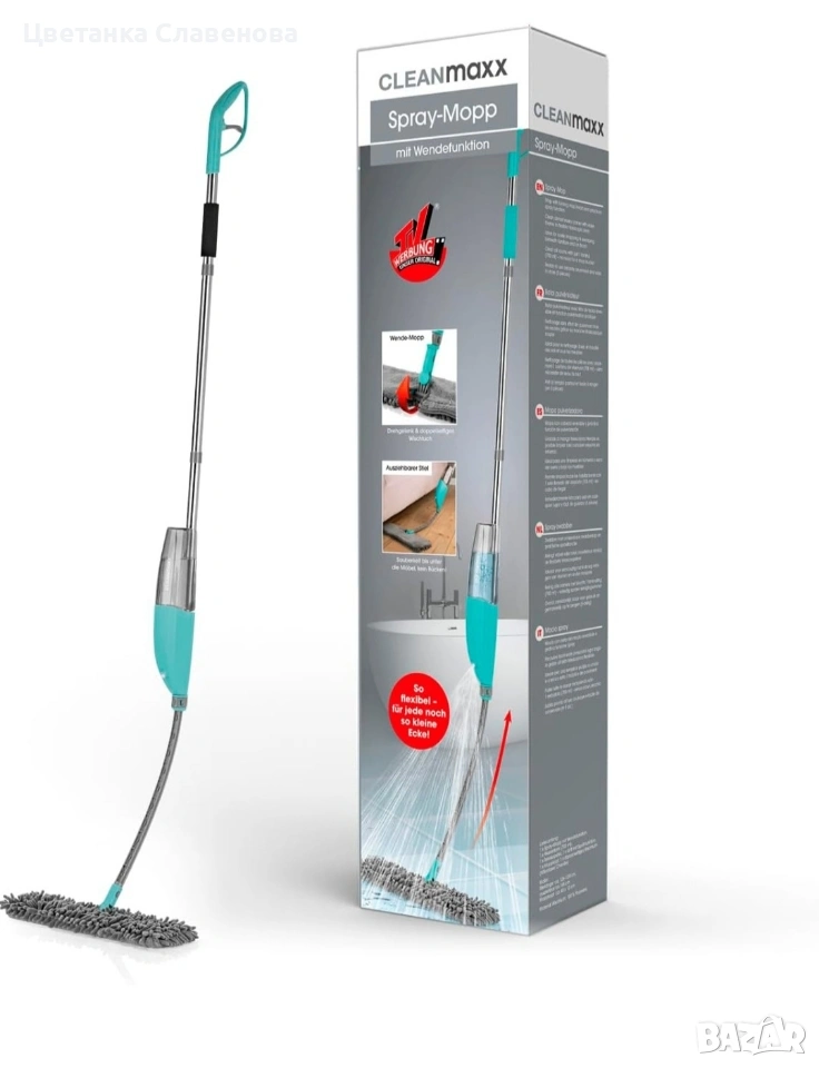 Със Спрей мопа CLEANmaxx ще почиствате лесно и без усилия. Този изключително практичен домакински помощник ви позволява почистването не различни видове подови настилки, от балатум и ламинат, до плочки и мрамор, без използване или носене на тежки кофи с вода и препарат.