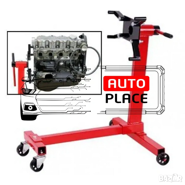 Ротационна стойка за двигател с 4 броя колела - 450кг