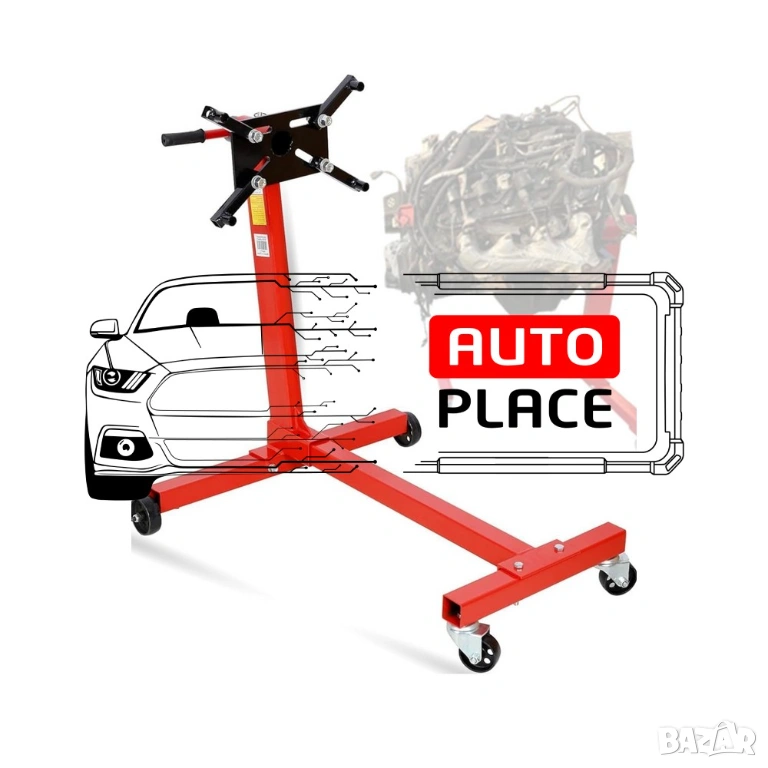 Тази стойка за двигател е ротационна опора за поддържане на двигатели с капацитет 450 кг. Стойката може да се използва за широка гама от двигатели и трансмисии: двигатели, скоростни кутии, глави на двигатели. Можете лесно да поставите ремонтирания елемент в желаната позиция. Главата се върти на 360 градуса, а фиксиращите рамена са регулируеми за достъп до всички части на двигателя.