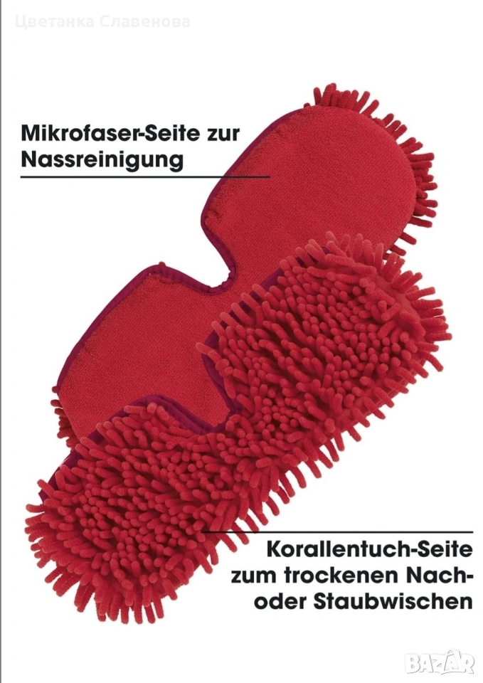 Лесно почистване - това вече не е проблем със спрей мопа "Cleanmaxx". Това практично помощно средство за почистване се използва без кофа и ви позволява да почистите широка гама от подови настилки до висок гланц, без досадно навеждане. Особено благодарение на гъвкавата и еластична глава на мопа, той е идеален за стълби, первази и труднодостъпни ъгли. Просто напълнете резервоара с вода или препарат и почистете. С двустранната кърпа можете да направите 3 стъпки само с едно устройство: Първо напръскайте пода, почистете с микрофибърната кърпа намокро и след това избършете на сухо с кораловата кърпа след просто завъртане на спрея моп. Като алтернатива, избършете по-мръсните подове намокро, а прашните подове само на сухо - без да изваждате спрея моп от ръката си.