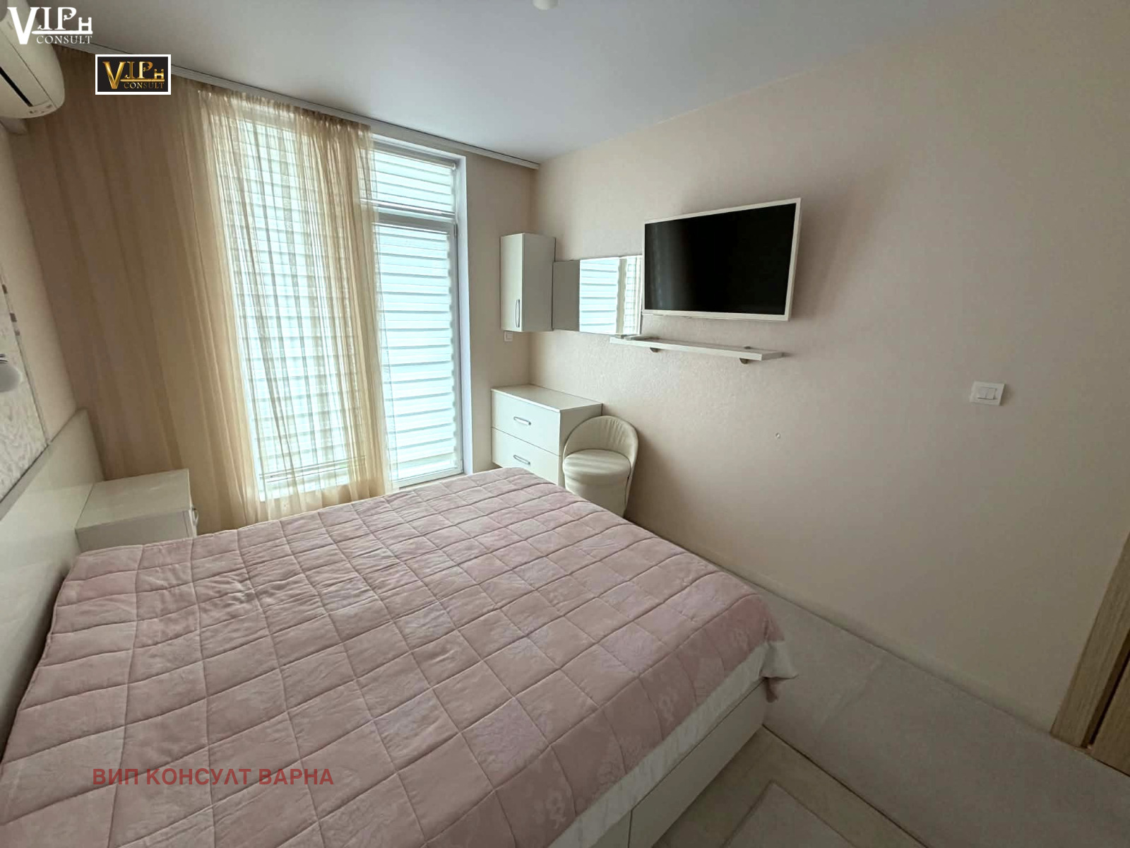 Апартаментът впечатлява с елегантен интериор, светли и меки тонове, качествено обзавеждане и усещане за уют и стил. Кухнята е модерно оборудвана, дневната е просторна и комфортна, а спалните са създадени с внимание към детайла и домашната атмосфера. Банята е изпълнена в изчистен и съвременен дизайн.