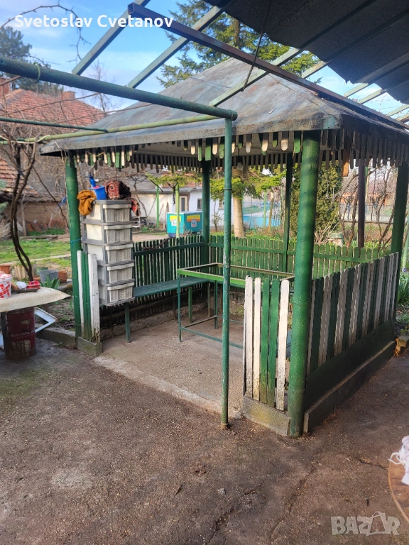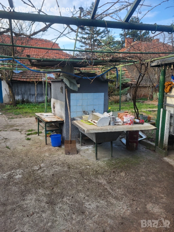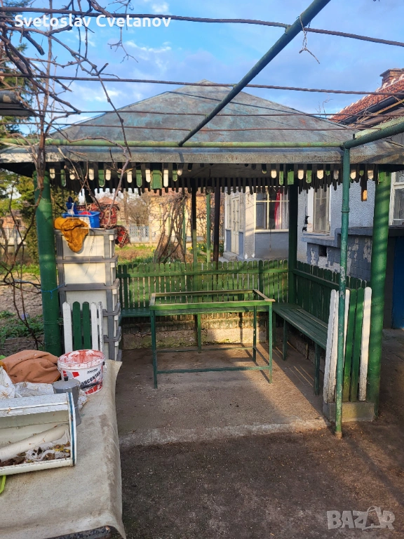 Къщата се състой от 4 спални ,2 кухни вътрешна и външна баня и тоал.мазе ,гараш със канал, селско стопански постройки и навеси 125 кв,ремонтиран покрив на къщата ,на шпакловка куня и спалня ,със 3 входа е ,пред цялата къща има десертни лози30 бр ,пред лятнана кухня има навес и беседка ,пещ за печене на агнета .има и климатик.дворът е чист и подържан подходящ за оранжерия ,хидрофор и водна понпа за поливане от геран има и трифазен ток,
