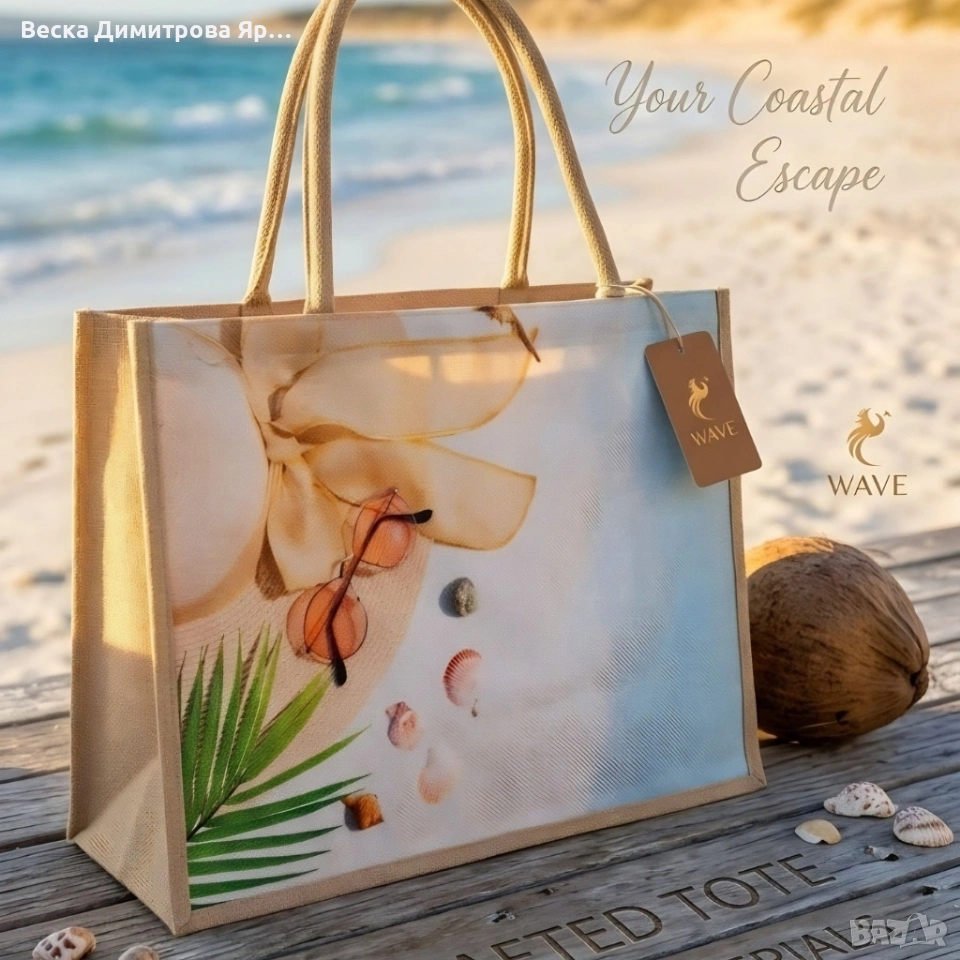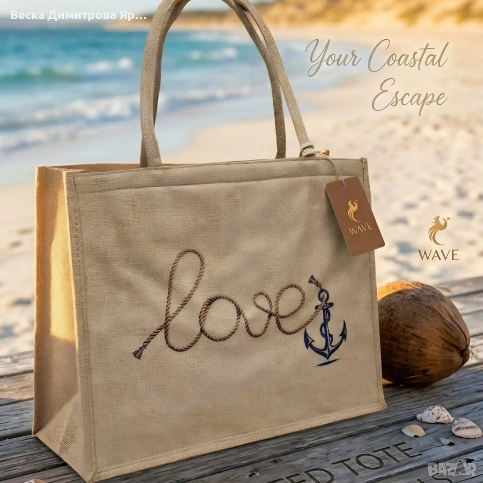 Стилна лятна чанта за плаж и разходка, размер 43 х 34 см