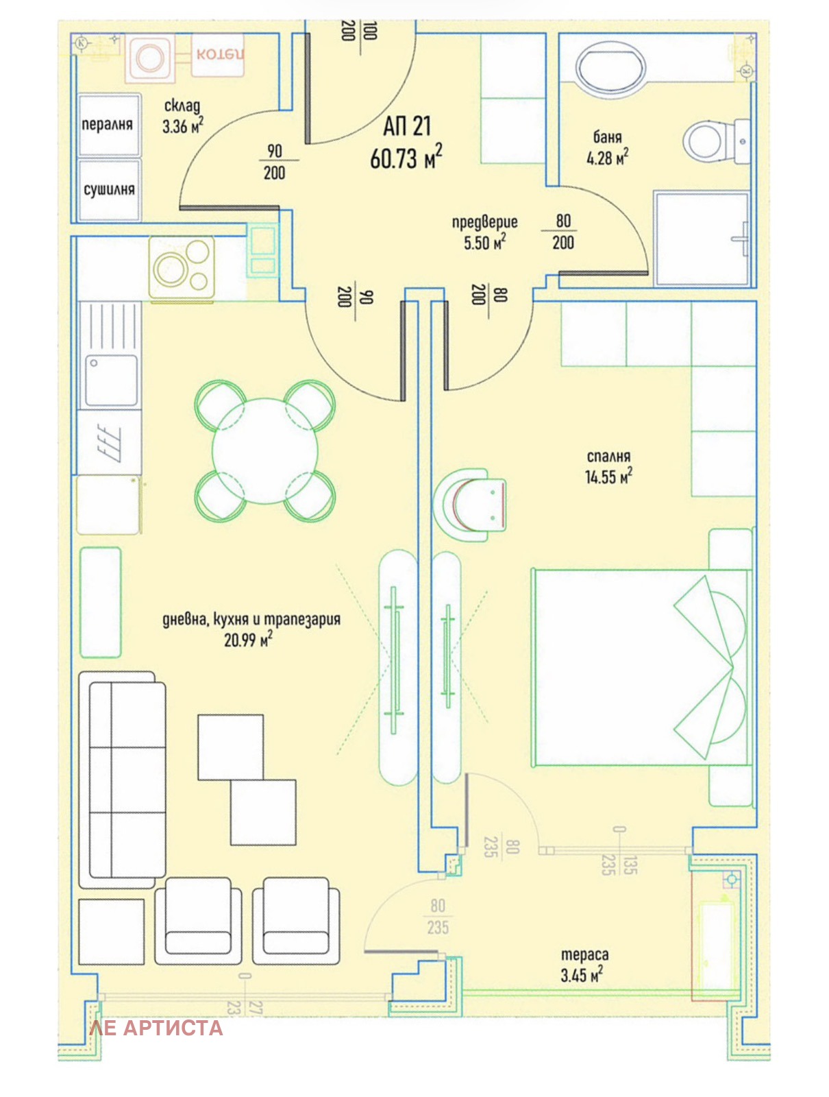 L'Artista представя двустаен апартамент в к-с ''Премиум парк' кв. Малинова Долина