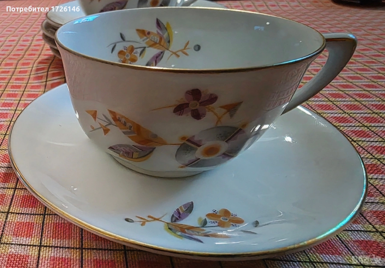 Фин порцелан с позлата - сет 2 броя и чинийки 3 броя на Zeh Scherzer Bavaria → Обява 54040197