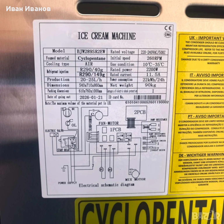 Сладолед машина → Обява 54040199