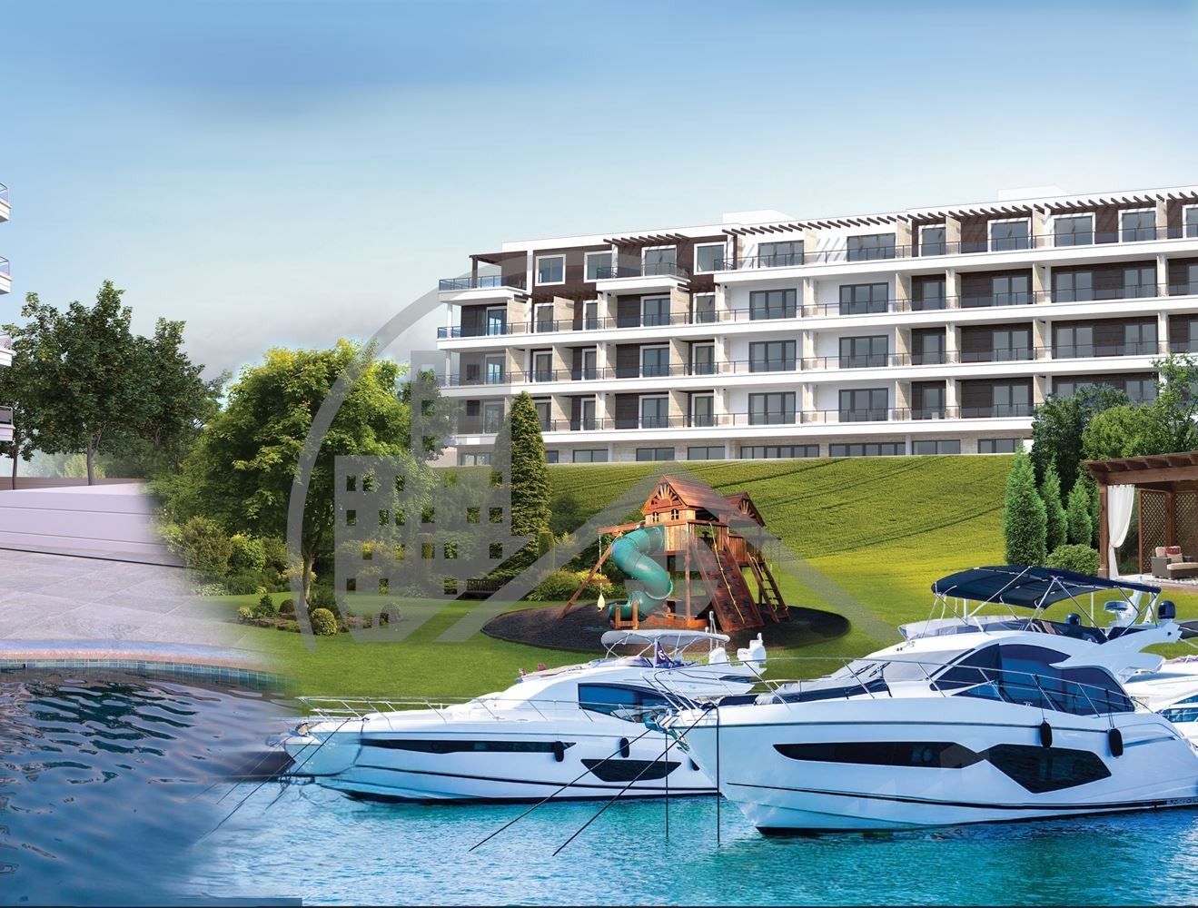 Сградата е ситуирана на тихо и съществено комуникативно място с прекрасна гледка към залива, в близост до ресторанти, плаж, магазини и други удобства за живущите в района.
