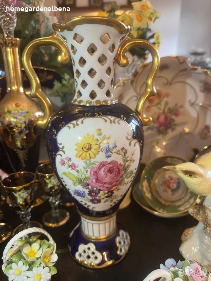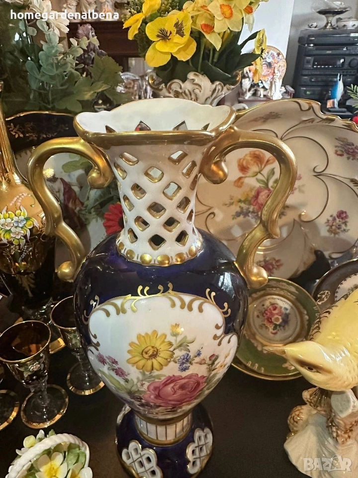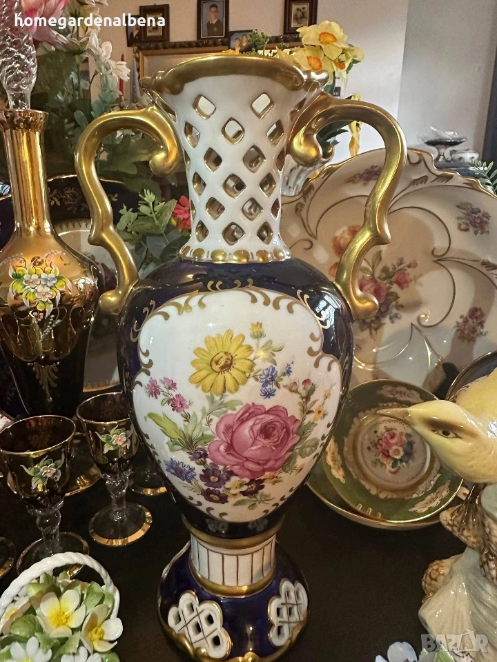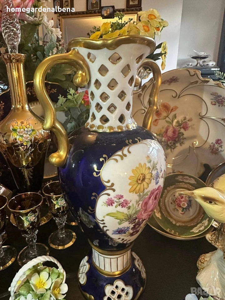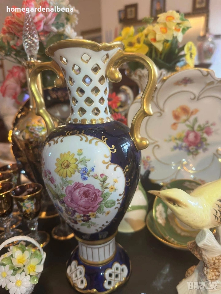 Ключови думи за търсене: Home&Garden Albena, Royal Dux, Bohemia, порцеланова ваза, антикварна ваза, колекционерска находка, кобалт и злато, ръчно рисувана