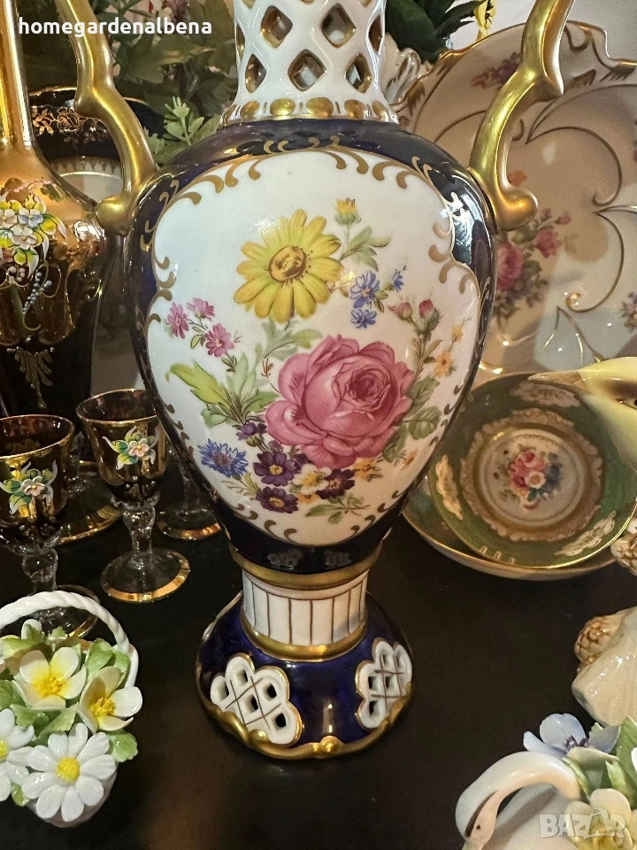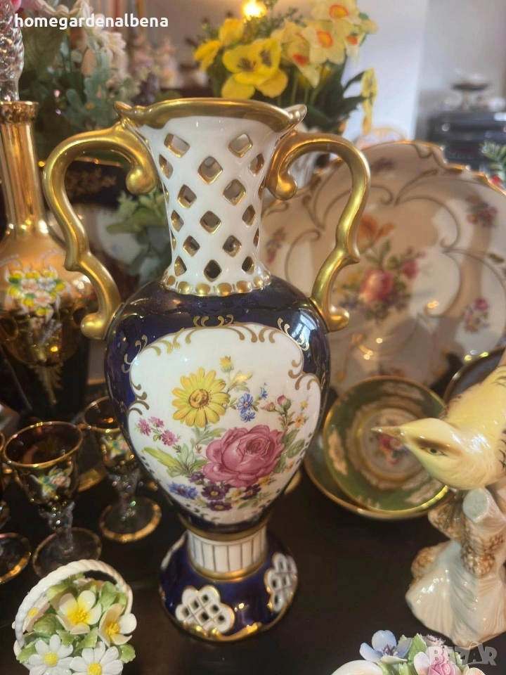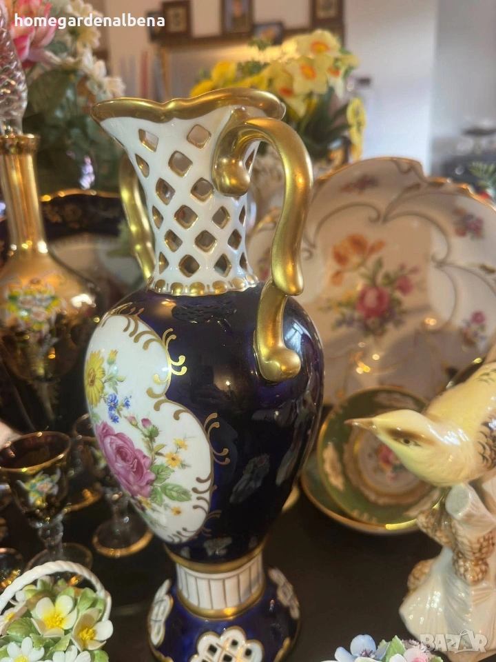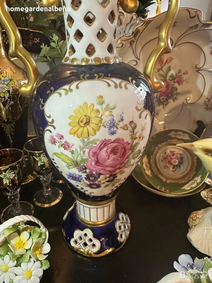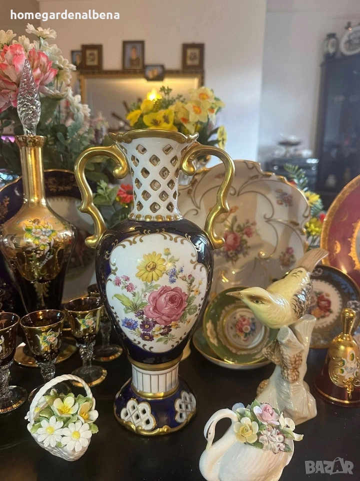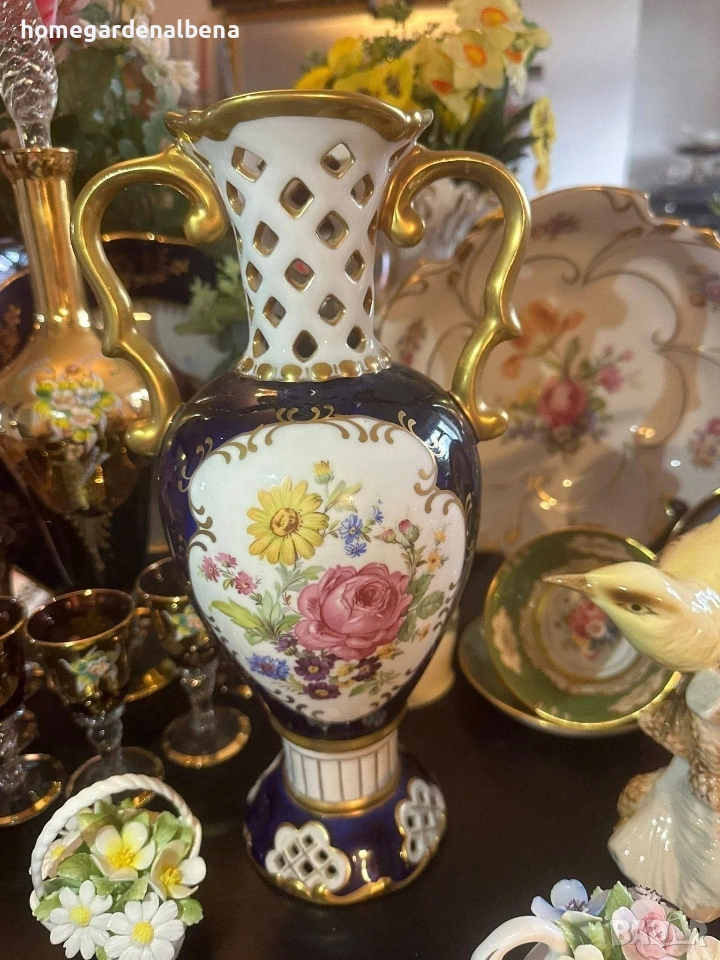 Ключови думи за търсене: Home&Garden Albena, Royal Dux, Bohemia, порцеланова ваза, антикварна ваза, колекционерска находка, кобалт и злато, ръчно рисувана