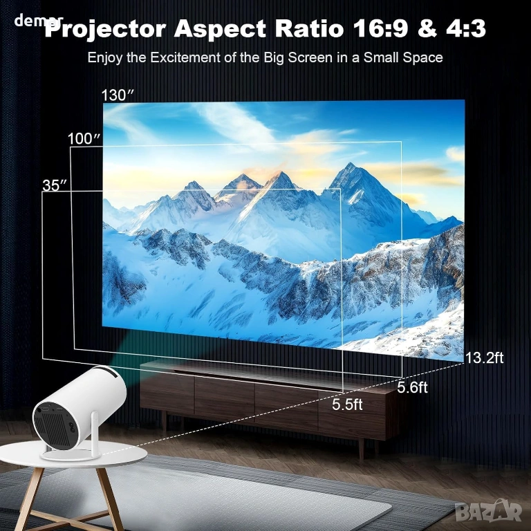 Мини проектор, интелигентен 4K 1080P проектор с WIFI 6 и Bluetooth